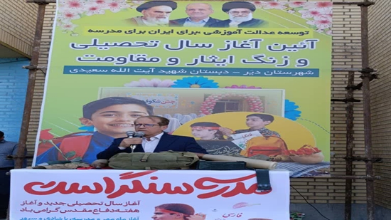 به گزارش روابط عمومی فرمانداری دیّر، سجادی فرماندار شهرستان دیّر در آیین نواخته شدن زنگ آغازین سال تحصیلی در مدرسه آیت‌الله سعیدی دیّر با گرامیداشت این روز و تبریک آغاز سال تحصیلی جدید، گفت: از هیچ تلاشی برای تحقق شعار «توسعه عدالت آموزشی برای ایران، برای مدرسه» فروگذاری نخواهیم کرد.